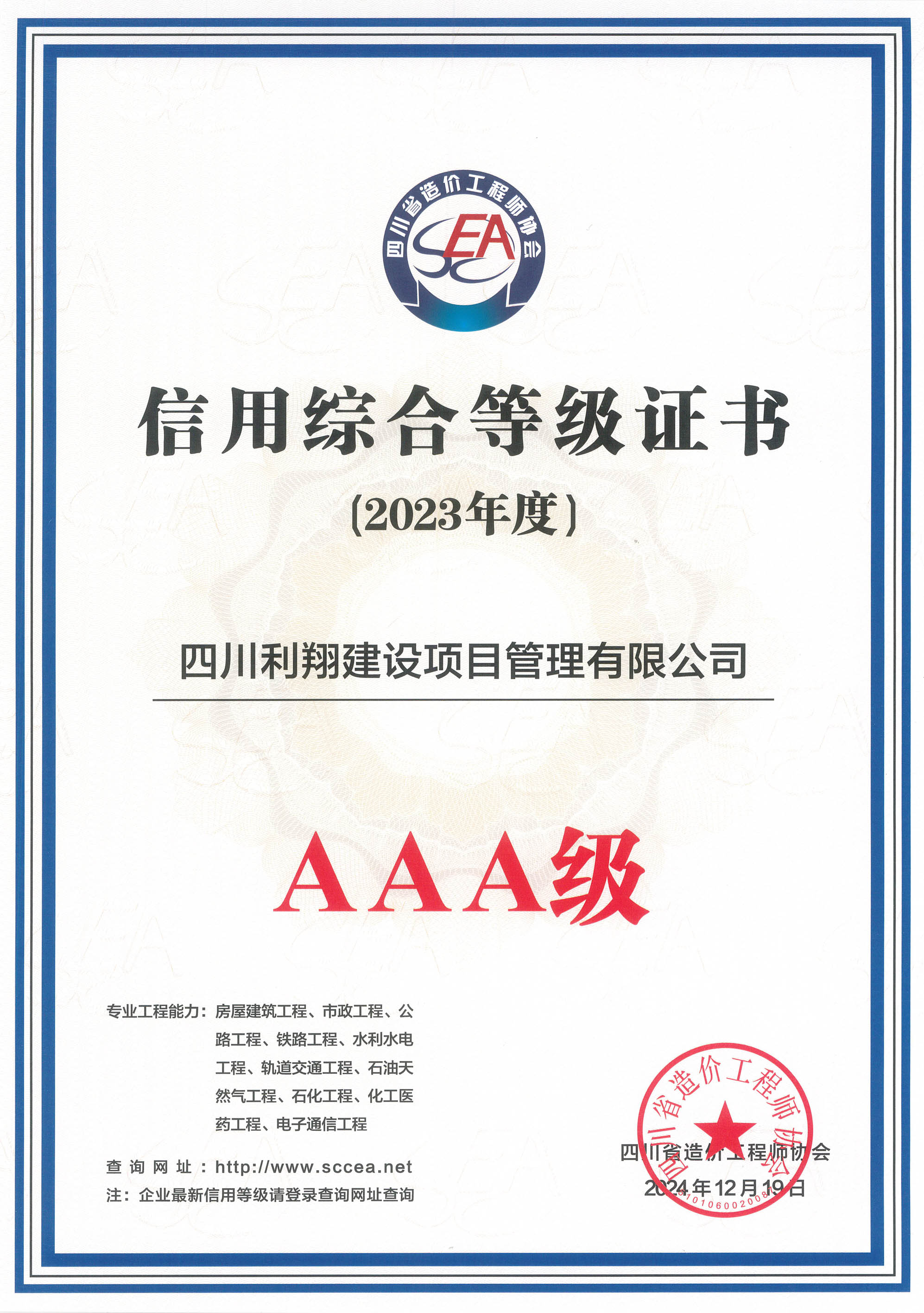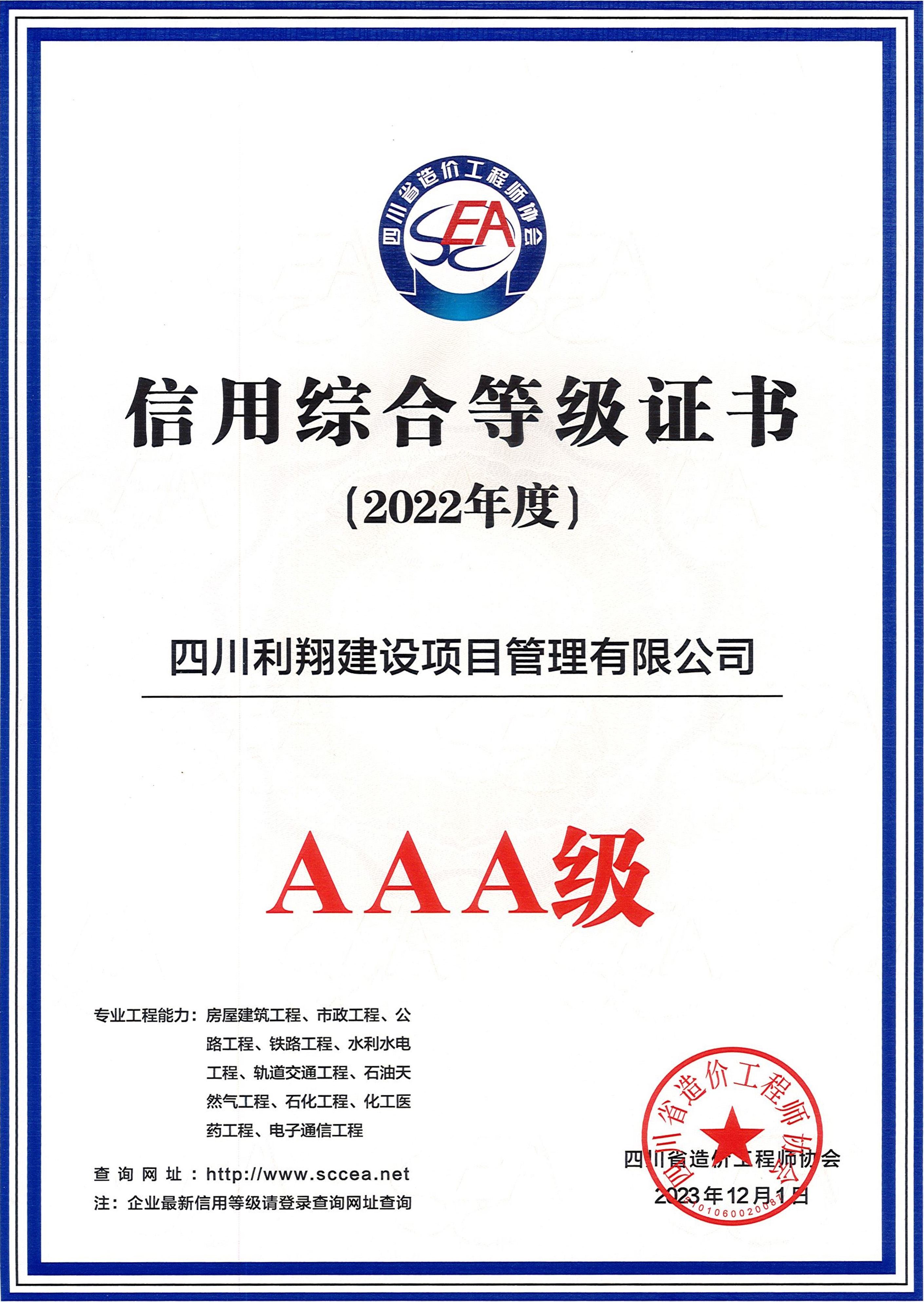 利翔咨詢自創(chuàng)立以來,始終秉承專業(yè)高效、攻堅克難、創(chuàng)新超越的宗旨,構(gòu)建了一支由注冊造價師、注冊監(jiān)理工程師、注冊咨詢師、注冊建造師、注冊會計師等組成的嚴(yán)謹(jǐn)、科學(xué)、專業(yè)、專注的咨詢團隊和專業(yè)全面、經(jīng)驗豐富的專家團隊。業(yè)務(wù)領(lǐng)域遍布10余個省、市自治區(qū),涵蓋了全過程工程咨詢、工程咨詢、工程造價咨詢、招標(biāo)代理、工程監(jiān)理、BIM咨詢、新基建、司法鑒定、專項債券咨詢、財務(wù)決算咨詢等多元化類型,先后獲得各咨詢類企業(yè)資質(zhì),并通過了多個國家行業(yè)標(biāo)準(zhǔn)化管理體系認(rèn)證,建立了完善的企業(yè)標(biāo)準(zhǔn),并獲得多項著作權(quán)認(rèn)證,連續(xù)多年獲得企業(yè)能力和綜合信用AAA級企業(yè)、省級優(yōu)秀工程造價咨詢企業(yè)、最具成長性工程造價咨詢企業(yè)、守合同重信用企業(yè)?,F(xiàn)系四川省造價工程師協(xié)會副監(jiān)事長單位,成都市工程造價協(xié)會副會長單位、成都市評審協(xié)會副會長單位、四川同心慈善基金會副理事長單位、中國建筑節(jié)能協(xié)會BIM專業(yè)委員會會員單位、成都市企業(yè)誠信促進(jìn)會會員單位。