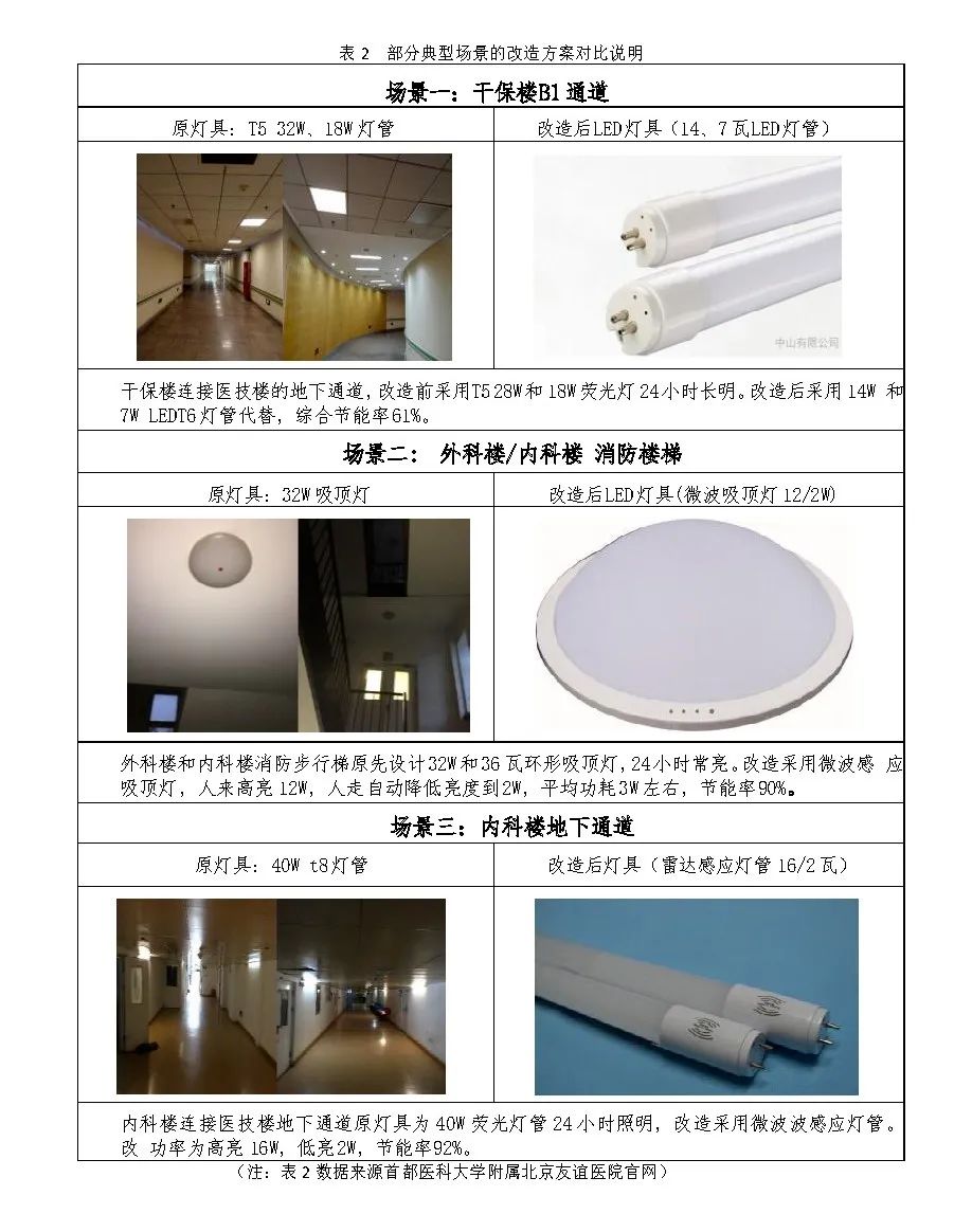 自2012年,醫(yī)院在門診樓地下車庫和公共區(qū)域更換了2309套LED燈具,實現(xiàn)50%的節(jié)電率,年節(jié)約15萬度電。隨后幾年,醫(yī)院在其他區(qū)域繼續(xù)更換LED燈具,節(jié)能率顯著提升,年節(jié)電量進一步增加至16萬度以上。2017年,更換1323支LED燈具,節(jié)能率達到67%,年節(jié)電24.64萬度。2018年,參與綠色照明補貼項目,更換T8日光燈,節(jié)電率達到57.72%,年節(jié)電122.2萬度。至2019年,醫(yī)院進一步在公共區(qū)域更換LED燈具,持續(xù)推動節(jié)能降耗。